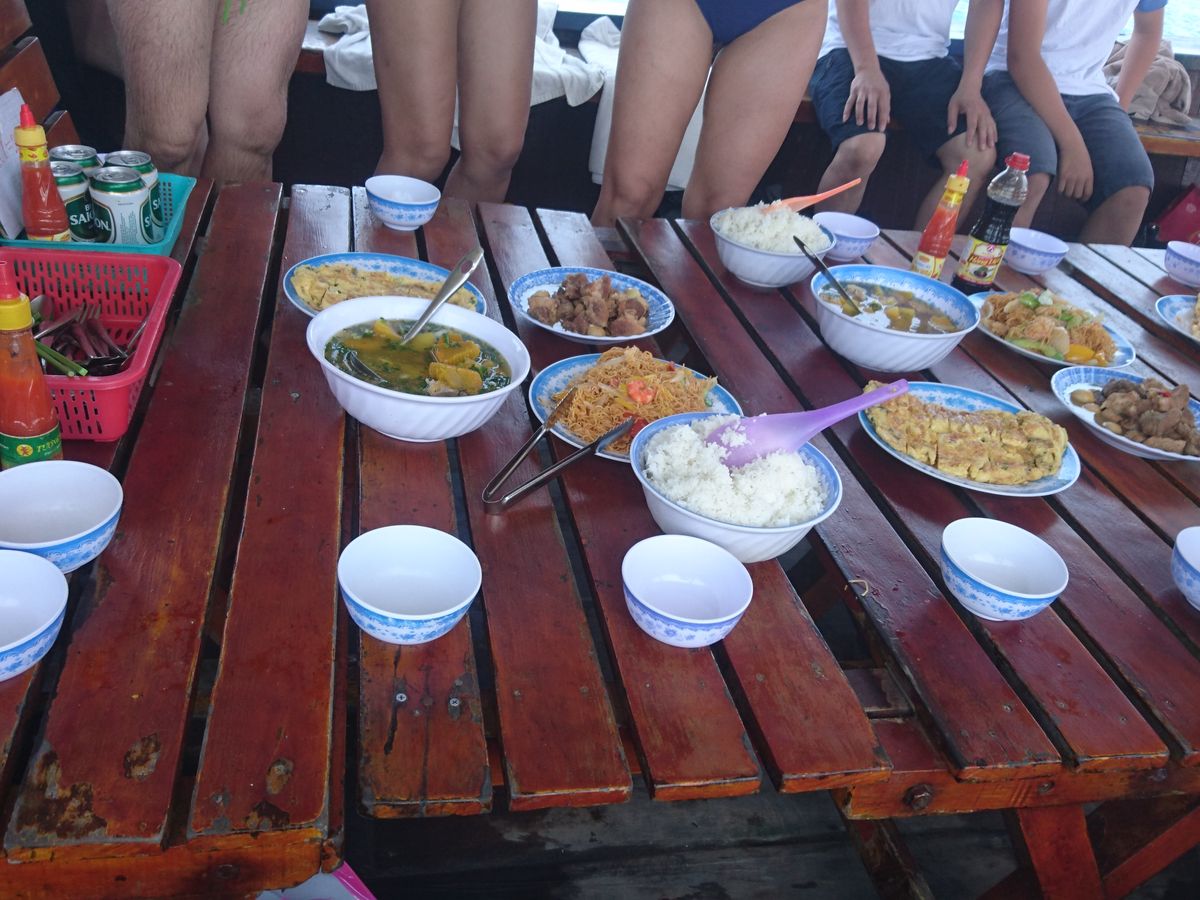 モッ島は9-10月に来た台風の影響で漁村が復興中でそこで食べるはずだった昼食も用意ができなかったみたいで、惣菜パンや菓子パン(現地のもの)が用意されていました。泳ぎ疲れていたし、いい天気だったことや海の上での食事だったので、それはそれで美味しく頂けましたが、漁村での食事を楽しみにしていたので少し残念ではありました。