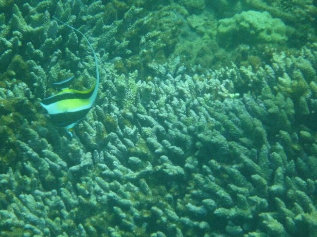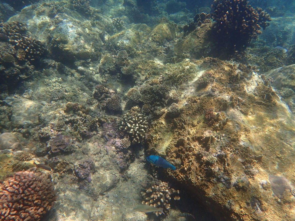 その後10分程度移動し、2ヶ所目のポイントに到着。妻と息子は疲れたためお休みで、娘と共に約1時間スノーケリング。珊瑚は多いのですが魚は少なめ。