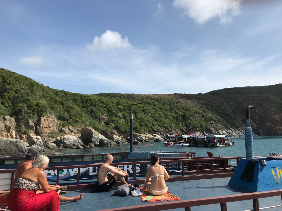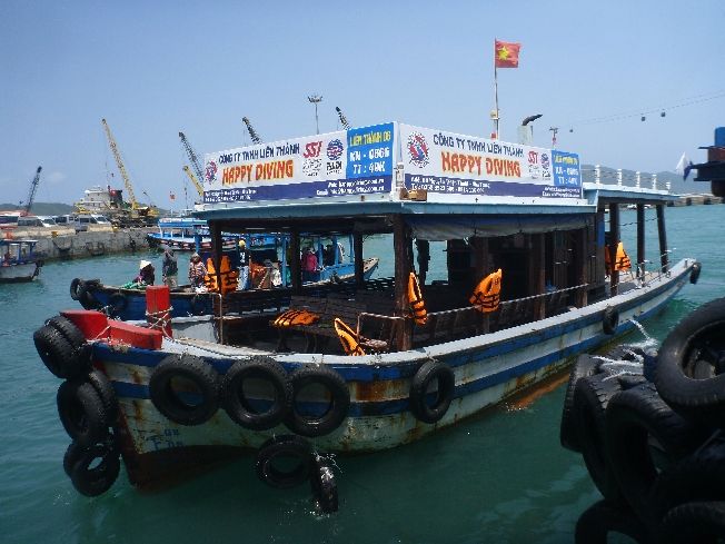 ツアーは韓国2組・ベトナム1組と一緒で、車でニャチャン南部の港まで約20分の移動。到着後、良く見るベトナム乗合船で計4組・9人のみで出発。(PADIのダイビングショップの船、ショップのスタッフも同行)