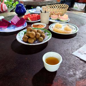 コースは、トイレ休憩を兼ねた工芸館見学、クチトンネル、キャッサバ芋の試食、昼食、はちみつ茶試飲、伝統曲とフルーツ試食、メコン川クルーズ、ココナッツキャンディー試食、夕食、蛍クルーズの順番だったと思います。