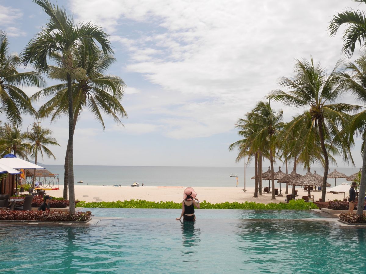 パラセイリングはすごく楽しかったけど、昼食は5つ星ホテルのレストランで優雅にベトナム料理と思ってたのに、なんとプール横の外での食事。景色を観ながらだからまぁ良いと思ったのもつかの間、メニューは、ピザ、パスタ、ハンバーガーのみ。