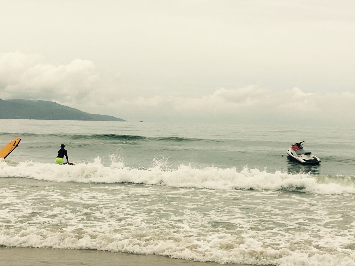 参加日当日は、朝からあいにくの雨模様・・・。天候不良の中、ジェットスキーができるのか不安に思いながら現地に向かいました。着いたころにはタイミングよく小雨になっておりジェットスキー開始!!2人で参加したのですが1台に2人乗り、かなり遠くまで連れて行ってもらいました。後半はわざと波に向かって行くことで迫力あるアトラクションに乗っているようで、とても楽しかったです!少し運転もさせていただきましたが、私は乗ってしがみついてる方が楽しかったです(笑)。途中から雨が強くなってきましたが、全く気にならないぐらい楽しませていただきました。