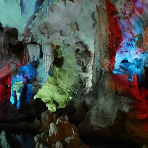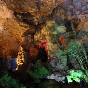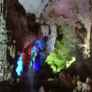 こちらは今回のティエンクン鍾乳洞と比べ、比較的落ち着いたライトアップが施されております。