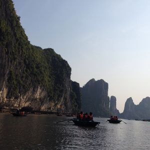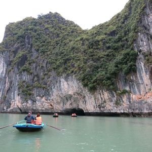 日本人ばかりだったので日本語ガイドで安心して参加できました。往復のバスは乗り心地が最悪だったけどベトナムですし、こんなモンかな?クルーズ船から手漕ぎボートへの乗り換えは一人5$!支払ってからベトナムドンでの支払いもokってことを知りショックだったけれど参加して良かったです。素敵な思い出ができました!