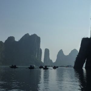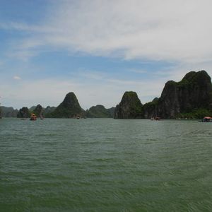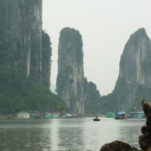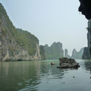 ハロン湾はあいにくの曇りでしたが、それでも景色は楽しめました。手漕ぎボートも別途7ドルかかりますが、水面近くから眺められるので、お勧めします。