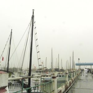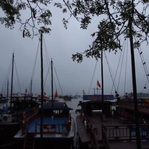 ハノイ市内からバスで3~4時間かけてハロン湾でしたことは、停泊している船での食事のみでした。前日から濃霧が発生しており、10m先も真っ白な視界。何も見えません…。前日には港での船同士の接触事故も起きていたようです。