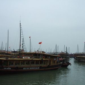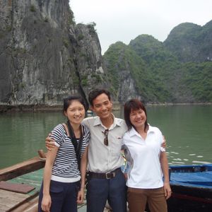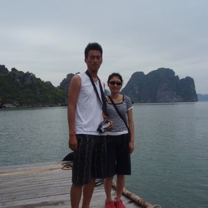 参加日は5月18日、雨期に入っていたので、天候が心配だったのですが、雨は夕方遅く、バスでの帰途の時だけだったのでラッキーでした。送迎は混載(日本人は私達を含めて4人)でかなりのホテルを回ってくるらしく、私達のホテルには45分も遅れましたが、日本語ガイド君が好青年できちんとお詫びをしたし、車内でも、説明はしっかりしているし、質問にもきちんと答えてくれるしで、遅れは帳消しです。3時間もバスに乗りやっとハロン湾に着くのですが、途中トイレ休憩も取ってくれます。もちろんそこはお土産など購入するお店ですが・・・。ハロン湾に着くと世界遺産ということで、平日なのにすごい観光客です。観光船も所狭しと係留しています。迷子にならないようにガイド君が気にしてくれます。湾はホントに波静かで奇岩があちこち、昼食は途中、水上生活者(魚売り)のはしけに横付けしてシーフード料理を頂きます。魚を買ったひとはそのまま調理してくれます。ゆーくり湾内を回るのでのんびり出来ます。もちろん船内にトイレはあります。最後に鍾乳洞そのものの島に寄ります。結構階段がきつかったけど、中は巨大な鍾乳洞でびっくり。予想に反して涼しくはなかったですけど。夕暮れ近く再びバスに揺られホテルに戻ります。他のツアーも見たのですが日帰りでは全て内容的には変わらず、大体90−100ドルぐらいします。何が違うのか良く分かりませんが、船の豪華さかな。でもそんなに遜色はなかったですよ。とにかくハロン湾1日ツアーに行くならこのツアーがコストパフォーマンスとしては最高です。お薦めします。