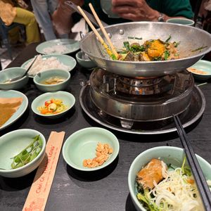チャーカーという料理で、魚や青菜や香草を鍋の中で炒めていきます。