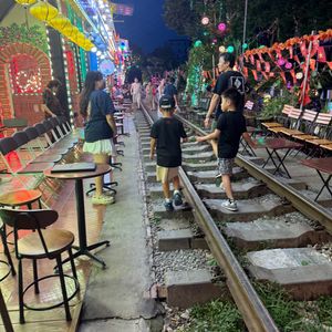 ナイトトレインストリートは煌びやかで非日常的愉しさがあります。ちょうど列車が通るタイミングだったので、とても興奮しました。すぐ目の前を通り過ぎるスピードは迫力ありました。おすすめです(* 'ᵕ' )☆