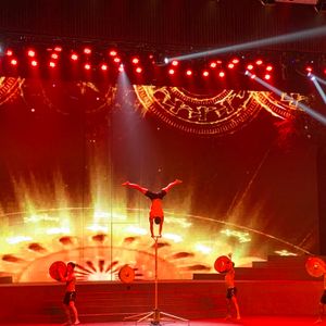 会場は思いのほか広くて大きな舞台です、民族舞踊からサーカス(アクロバット)まで、次々と演じられて楽しい雰囲気でした。