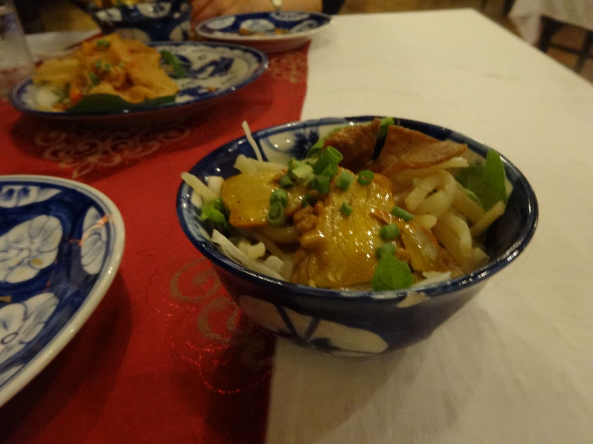 店に入ると普通の客と間違って案内されそうになったのでバウチャーを見せると、ろくに名前を確認もせずに「じゃああそこに座って」と案内され、あとは別料金でドリンクを頼んだだけで料理は勝手に出てきます。揚げワンタンが美味しかった!