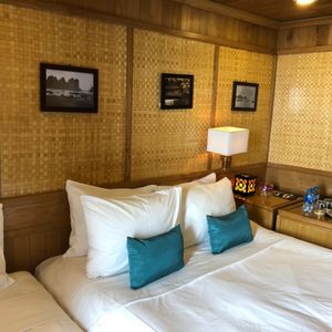 船の内装や部屋のインテリアは木をたくさん使った落ち着いたインテリアで部屋の中も清潔感が有り、アメニティも用意されていて普通のホテルと全く変わらず快適に過ごせました。