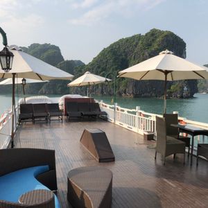バルコニーも広く、贅沢な気分でハロン湾の景色と夜は星空鑑賞を楽しみました。