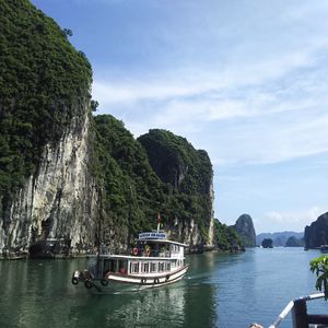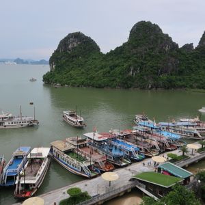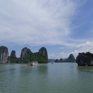 割と好意的な口コミの多かったこのツアーに参加しました。一番最初のホテルピックアップは7:30との事で、私の宿泊ホテルは約束時間ぴったりに8:00に迎えが来ました。ハロン湾までは高速道路が開通していないため、ハノイ北東170キロに位置する湾まで片道4時間(途中30分休憩含む)。今回の参加者は12人でマイクロバスは満席でしたが車内は快適でした。乗船後、すぐには船は出ずランチタイム。6人ずつのテーブルに分かれて大皿をシェアする形式です。絶賛とまではいきませんが、十分美味しかったです。クルーズ開始後、船の上階に移動。景色を堪能する時間はたっぷりありました。その後鍾乳洞見学、小舟乗船(ここだけ小舟の漕ぎ手の女性にチップ必要)と楽しい時間を過ごす事が出来ました。ドライブ時間が長くてホテルに着いたのが20:30。かなり疲れましたが参加する価値は大いにあります。一つだけ難を言うなら、ドライバーの運転マナーがイマイチだった事。クラクション鳴らし続けて猛スピードで追い抜くのは少し怖かったです。