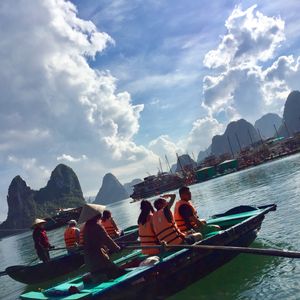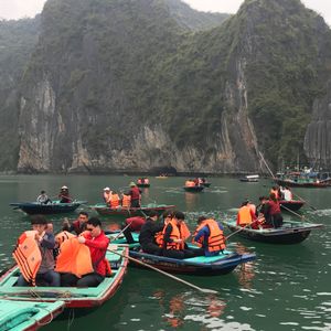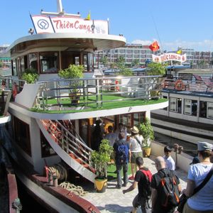 ハノイからは36人乗りのバスにカナダ人カップルとインドネシア人カップルと自分のみ、ハロン湾で韓国人女子3人組と合流するも船も豪華且つ36人乗り。始終スペースにも行程にも余裕が有りガイドさんも懇切丁寧且つ親切。食事も大変豪華で大満足でした☆