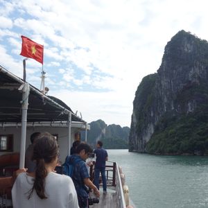 勉強のために英語ツアー!ガイドの英語はアジア訛りで聞きにくかったけどなんとか理解しました!何より多国籍でいろいろな国の人と食事とかしながら英会話楽しみました!ハロン湾は片道4時間としんどかったけど世界遺産一見の価値あり!小舟での散策や洞窟観光も良かったです!