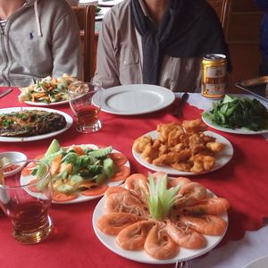ハロン湾についてからはすぐに船に乗り込み、すぐに昼食が出されます。5人で1テーブルを囲み料理をシェアしましたが、充分な量があり、味もとてもおいしくいただきました。