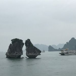 その頃には雨は上がり、空ははあいにくの曇りでしたが、そのとき目の前に見えた憧れのハロン湾は、靄がかかり、まさに枯山水の世界観そのものでした。