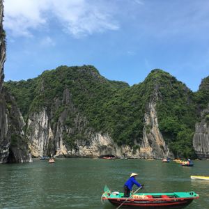 一人で参加。ホテルでのピックアップ時間は8:00-8:30という指定の中で8:05で正確だった。ツアー参加者は20名、日本人は自分のみ。月曜日のツアーの割には参加者が多いと感じた。ツアーの参加者にはフランス人が多く、観光に来やすい環境なのかと感じる。バスは往復とも4時間くらいの時間がかかった。WIFI対応可能のステッカーがバスに貼ってあり、IP保存し接続はできたものの、つながらず、ガイドさんに方法を質問したが回答は無かった。食事は7品くらい出てきて、ボリュームも十分でおいしかった。ハロン湾では別グループのツアーと合流したように思えたが、混雑しているレベルまで感じず、余裕があった。4~5人乗りのボートがツアーに含まれており、ストレス無く洞窟をくぐるミニツアーに参加できた。ガイドの英語は比較的わかりやすかったものの、ガイドの説明量はあまり多くなかった。値段を考えると十分リーズナブルーなツアーであると思えた。
