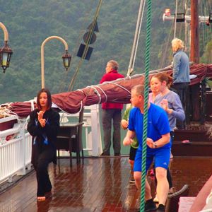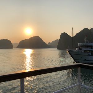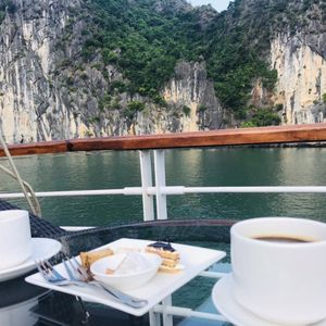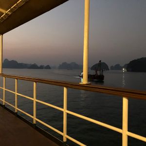 朝起きてデッキがあがった際に目の前に広がるハロン湾の景色がとても印象的でした。船がゆっくりと進みながらその壮大な景色の中で、早朝に優雅に太極拳をした時間は特別なものでした。