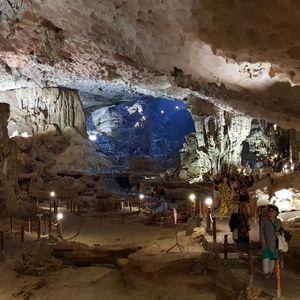 朝食後は最後のイベント、鍾乳洞見学。ハロン湾の小島の中にできた鍾乳洞を見てまわるのだが、ガイドさんが見所を一つ一つ説明してくれる。ガイド無しではただのウォーキングだったかも。