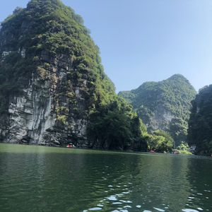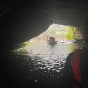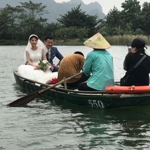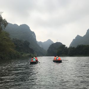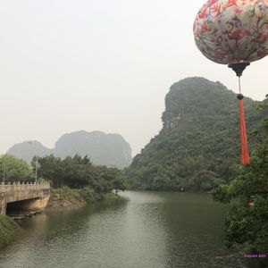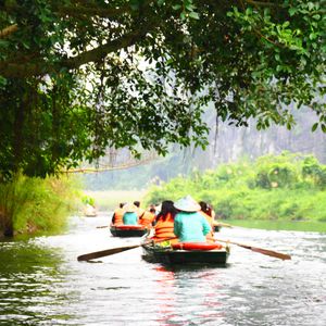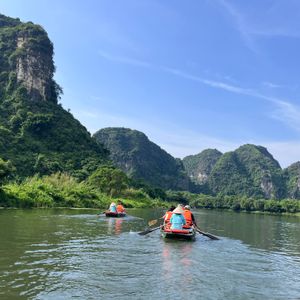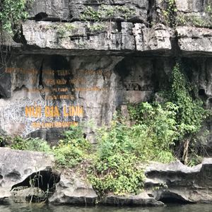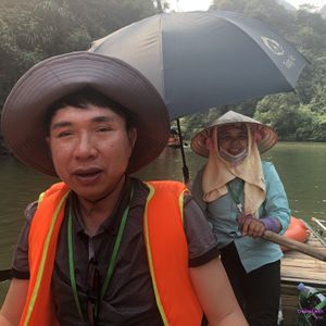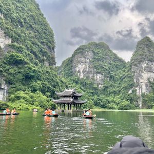 世界遺産登録のチャンアンは陸のハロン湾と言われているらしく、ハロン湾の小島が平坦な陸地の上にあるようで、間に川が流れてる。その川を船頭さんが漕いでくれるボートで巡る。途中、古いお寺がある中洲に上陸したり。