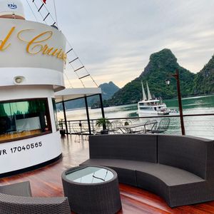 バーやクラシック号でツアーに参加しました(夫婦・子供3)大きい客船と思いきや小さめの客船であれ?と思いましたが、我が家だけのプライベートクルーズで大変良かったですね。心配していた食事についてもがっつりローカルフードではなく洋風+ベトナム料理で子供達もおいしく戴けました。事前に食べ物NGを反映してくれたりと気遣いも十分です。アクティビティのカヤックも湾内なので安心して楽しめました。2日目のチャンアンも壮大な景色に感動ですね。途中雷雨だったのが残念でしたが…なにより子供(私の子供は12歳・17歳・20歳ですが)も退屈せず楽しめるツアーです。