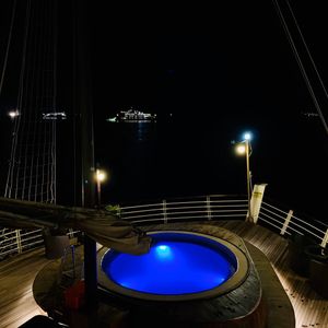 夕食後のイカ釣りは、船尾のライトに集まるイカを簡易な仕掛けで引っかけて釣るというものでしたが、20分ぐらい粘りましたが水面に1匹だけイカを発見することができましたが、まったく釣れる気がしませんでした。あくまでもちょっとしたアクティビティとしてのイカ釣りだと思います。また船尾にある釣りスペースがとても狭く2人ぐらいしか釣れないので、本気で釣りを楽しむ方は夕食後は早めに釣りを始めるのがいいかと思います。