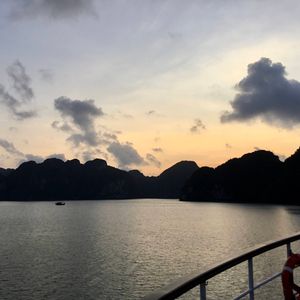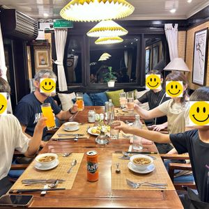 空港近くのホテルまでお迎えにきていただき、2日間私たちふたりだけのプライベートツアー状態でした。ハロン湾までは車で3時間ほどかかるので、クルーズで宿泊してゆっくりハロン湾を眺められてよかったです。カヌー体験、料理作り体験、夜明けの太極拳と、アクティビティーも楽しめました。食事も満足できました。二日目も朝から洞窟見学もし、下船後、チャイアンへ。チャイアンの舟下りもハロン湾とはまた違った趣でした。夜にハノイ市内のホテルに到着。ガイドさんも運転手さんも感じよく、一生懸命にお世話してくれました。