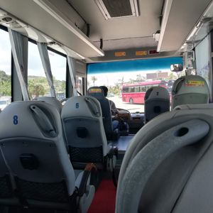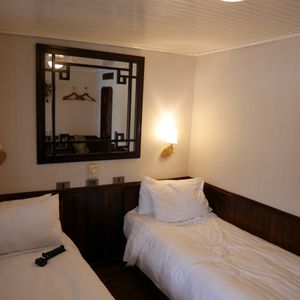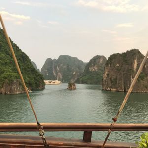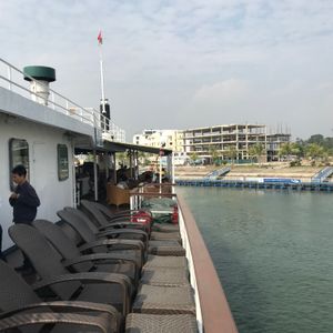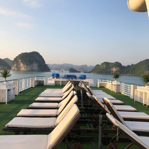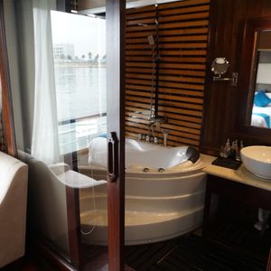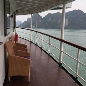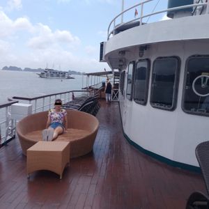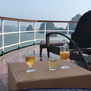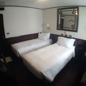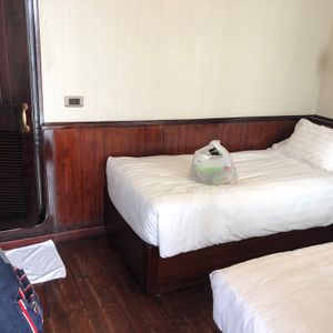 朝は宿泊先のホテルまで迎えに来てくれて助かりました。リクライニングできるバスだったので4時間くらいの移動もさほど苦にはなりませんでした。しかもバスには充電用のコードがあったので充電には困りませんでした。古いバスでしたが、ふかふかの座席で座り心地は悪くなかったです。到着後は受付をして少し待って乗船。船内は部屋は写真で見てたより狭かった。(写真はスイートルーム?)トイレとシャワーは同じだったので、シャワーを浴びると周りが濡れます。特別綺麗という印象はないですが清潔感はまあまあといった感じです。船内のサービスはスタッフが親切でいい印象をうけました。季節の問題でイカ釣りが無かった?のでどの期間が実施予定かわかればよかったかなと思います。ハロン湾ツアー自体は満足しており、宿泊ならではでゆっくりとした時間を過ごすことができてよかったです。