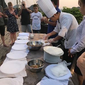 迫力がありました。洞窟探索や真珠の養殖探索、石段400段、春巻き教室などアクティビティーも満載で飽きることなく、要所で楽しめます。それらのアクティビティーと食事の間にある、