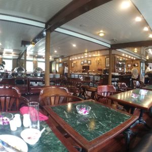 船は1階がレストランと客室、2階は全て客室、3階は客室、サンデッキとバーカウンターとなっています。歴史的な船のため、周囲を走る他の客船と比べてやや見劣りはするものの、清掃は行き届いているし不便はありません。