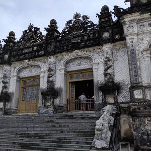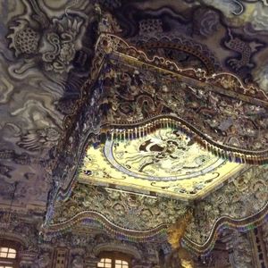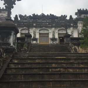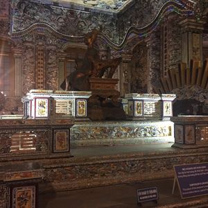 約束の時間より早くガイドさんがホテルのロビーで待っていてくださり、時間通りに出発しました。私達夫婦と、もう一人の参加者を別のホテルでピックアップしてまずはカイディン帝廟へ。荘厳な雰囲気で東洋と西洋の様式が混ざり合い独特の雰囲気。中に飾られた帝の像は神秘的でもあり思わずカメラに収めずにいられないインパクトです。