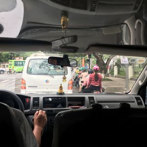 車は7人乗りでキレイな車でしたが、後部座席は、かなり狭かったです。足元も天井も。