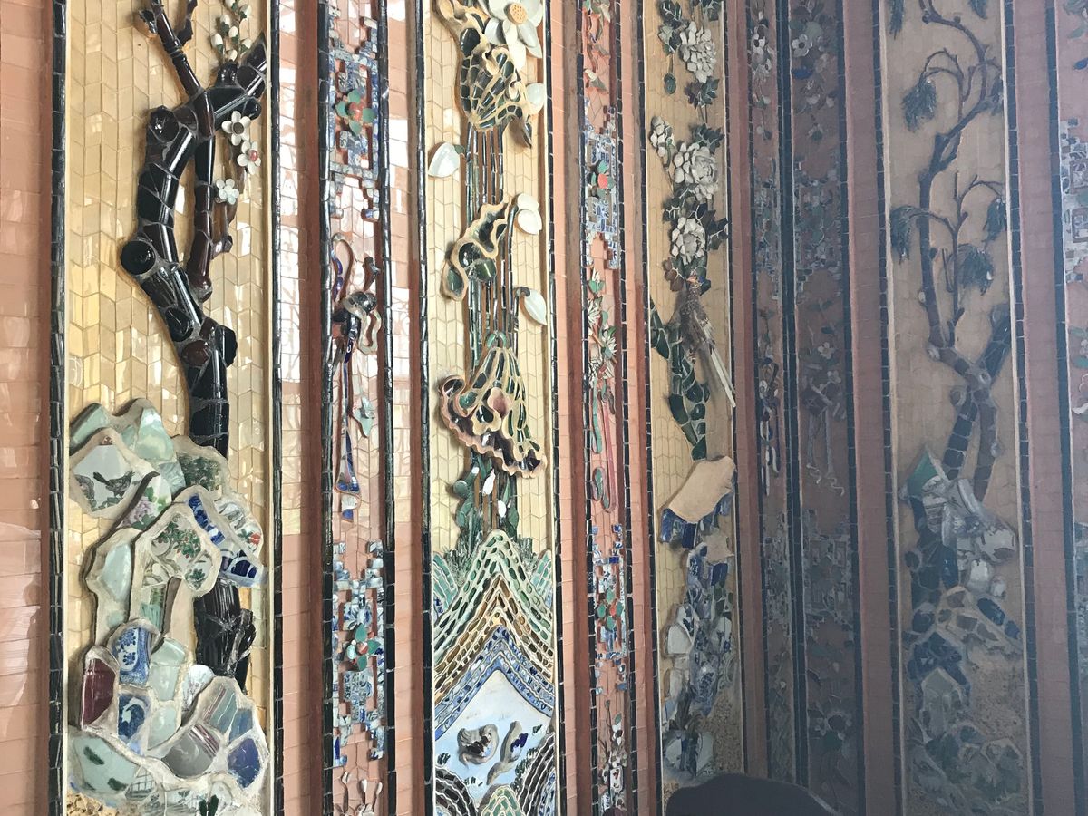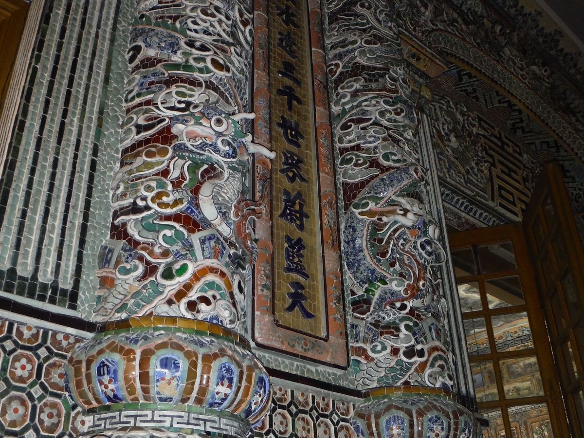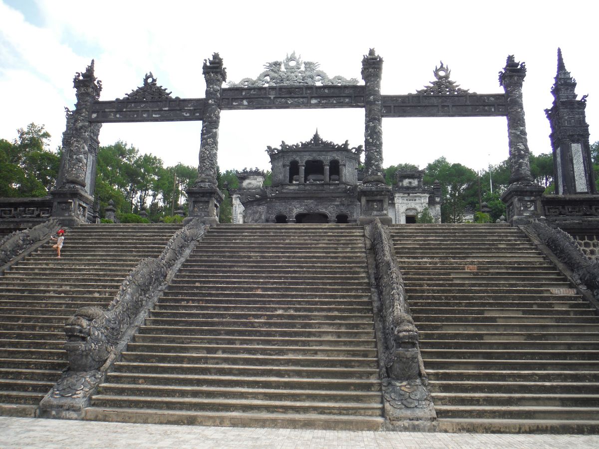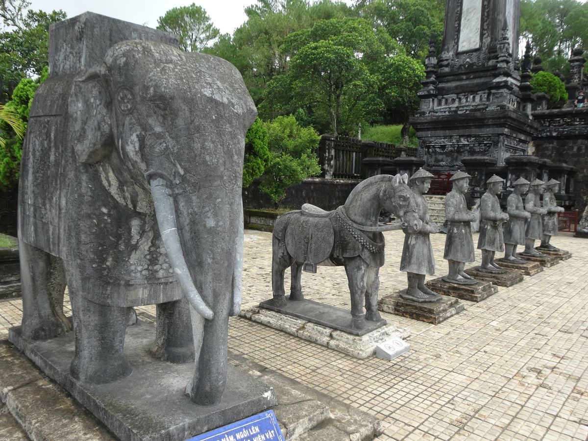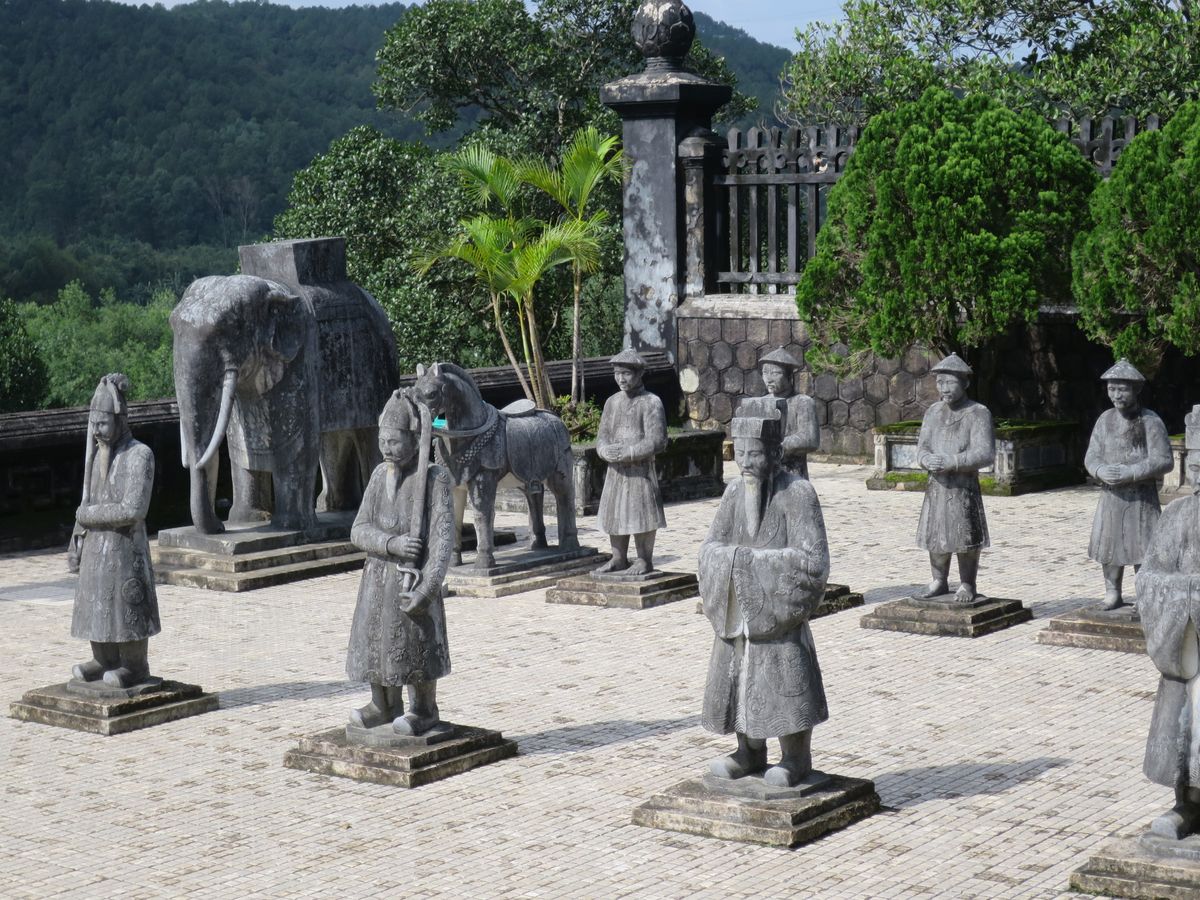 カイディン帝廟の石像の写真を見て以来ずっと気になっていたので、本物を目の前にして感動で震えました。そして帝廟内の装飾が予想をはるかに上回る豪華さで目を見張るばかり。玉座の下にはグエン朝最後の皇帝が永眠されていると聞き驚きでした。日本の陶器やら当時思いつく限りの贅を尽くしたこの建物が廟と思うとグエン王朝の栄華が想像できます。