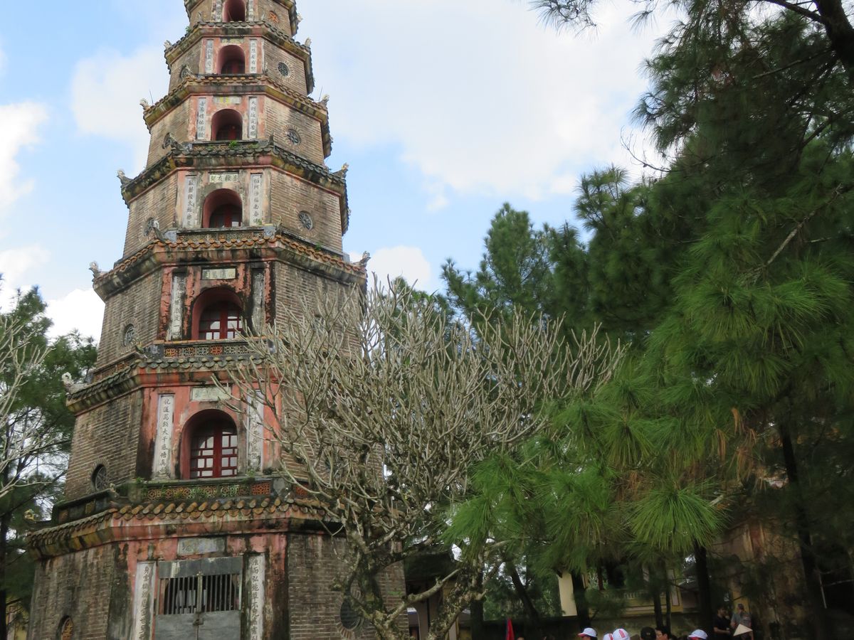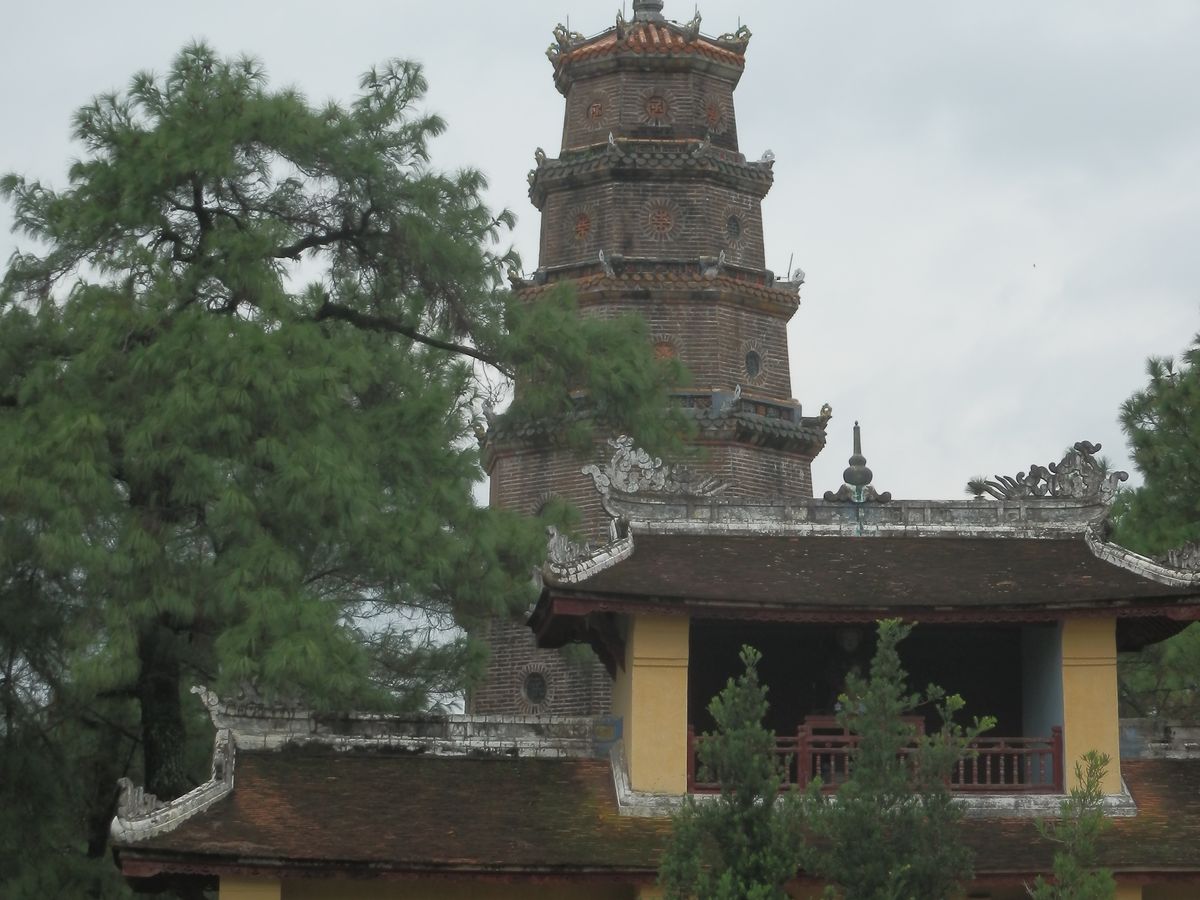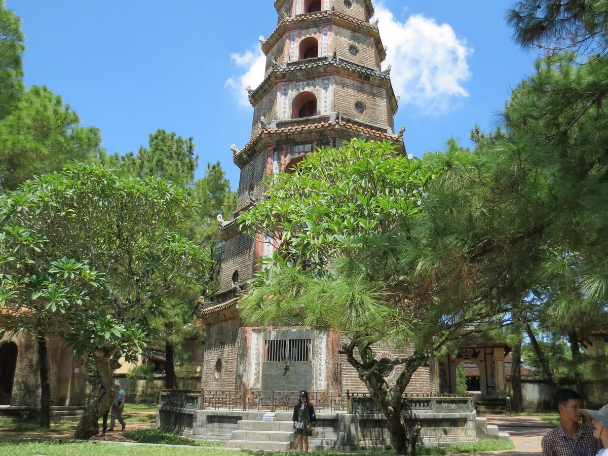 フエでは、ガイドさんが天気の状況に合わせ見学先を組んでくれました。カイディン帝廟は、石造りの彫刻や、きらびやかなモザイクの廟など様々な雰囲気を持つ史跡でした。天女寺は、建物に趣があり、心安まる寺院でした。
