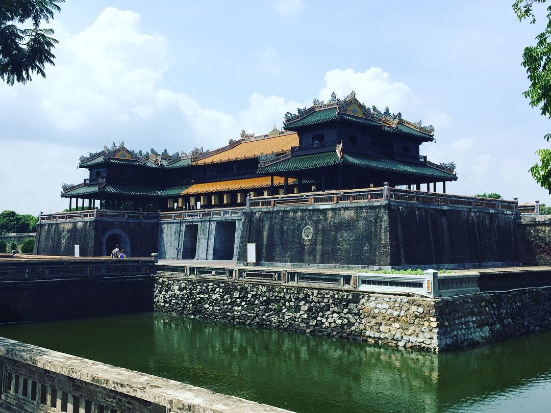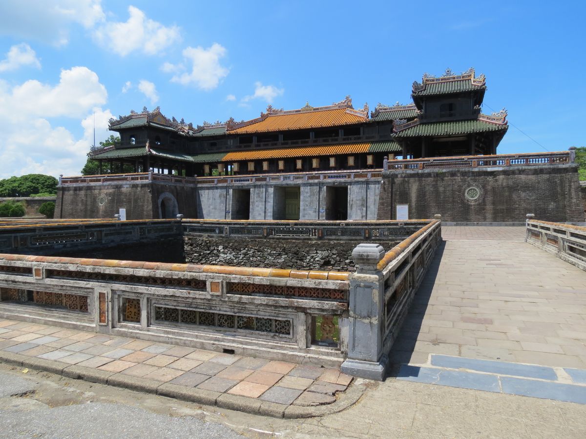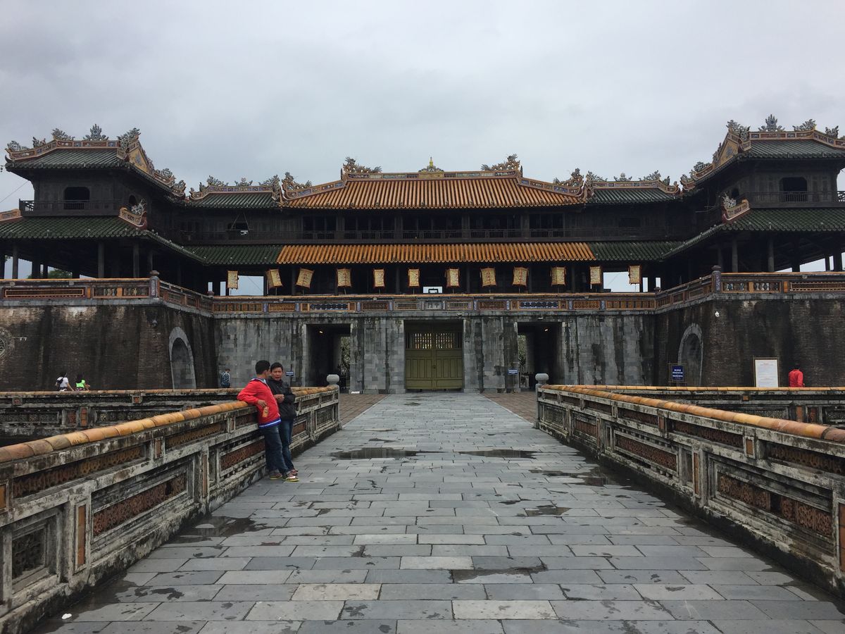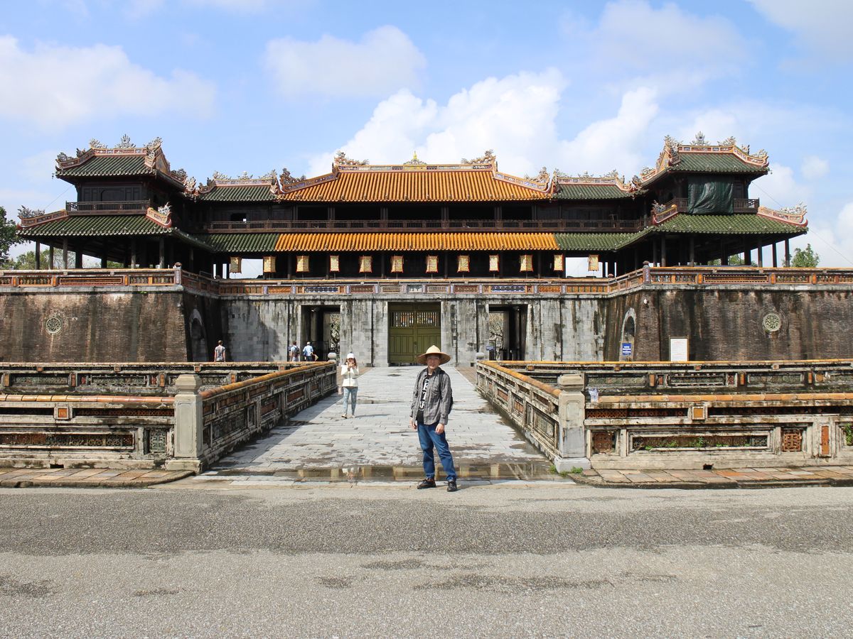 ダナンの海辺のリゾートに夫婦で宿泊して、そこからフエへ行く日帰りツアーに参加しました。まずは、峠道を快調にとばしてカイディン帝廟へ、その後に天母寺を見学。フエ宮廷料理の昼食の後に、いよいよのグエン朝王宮の跡を見学しました。王宮跡は驚くほど立派な城壁と大きな門が聳え立ち、1歩中に入るとこれまた驚くほど広大な敷地が広がっていました。おそらくあったであろう建物は破壊されてしまい修復された赤いきれいな回廊が伸びていました。あれほど大きなものを作る大きな力とそれを破壊してしまう大きな力を感じました。フエは、行かなければ知らないままで、行ったからこそもっと知りたくなる場所でした。きちんと歴史を知りたいと思いました。参加して本当によかったです。1日では時間が足りません。次にもし行くことがあれば、フエに宿泊して、ゆっくりと王宮跡や帝廟を楽しみたいと思いました。