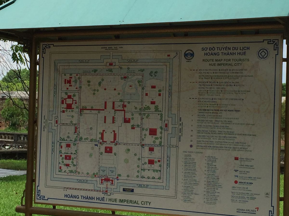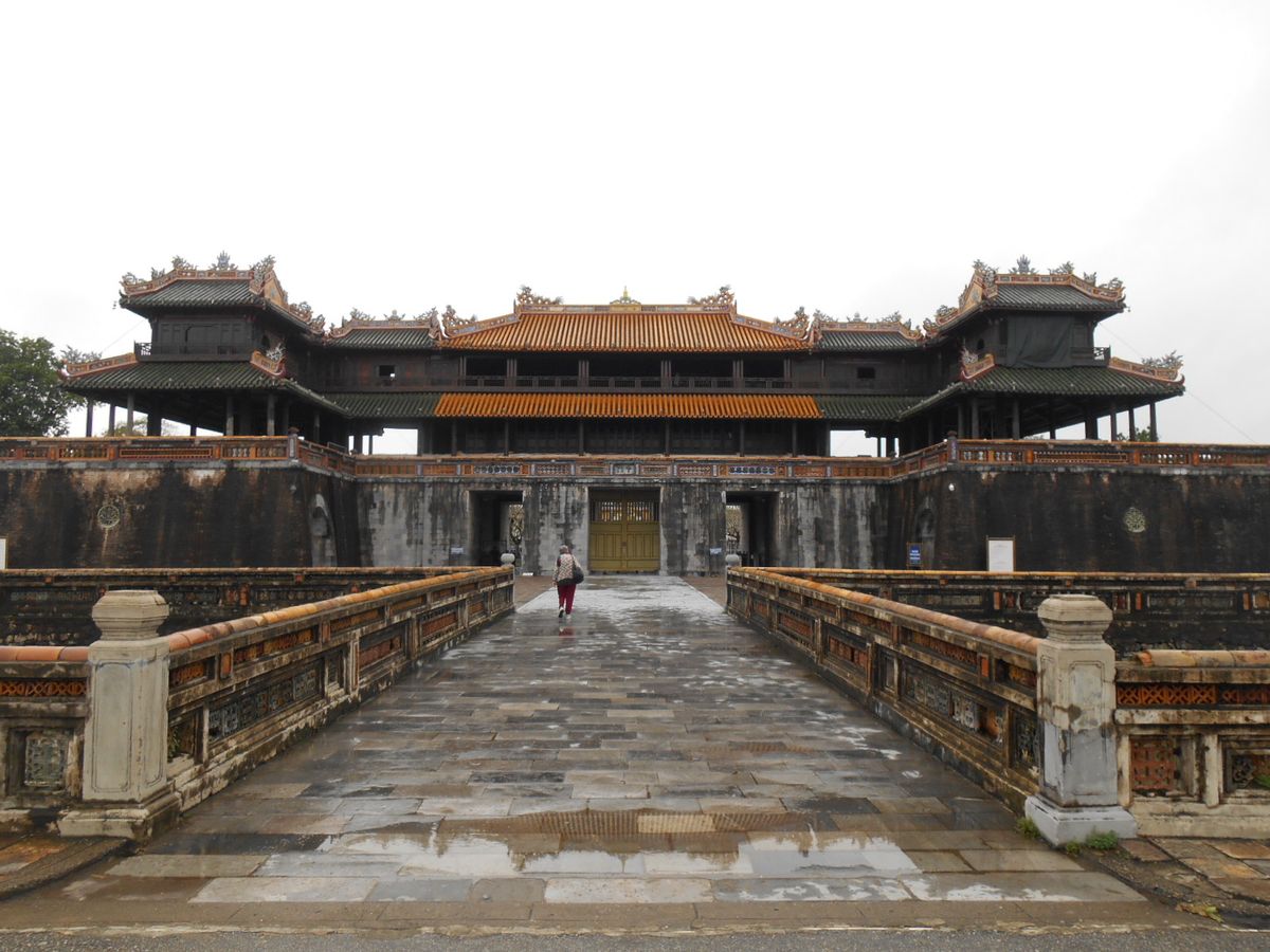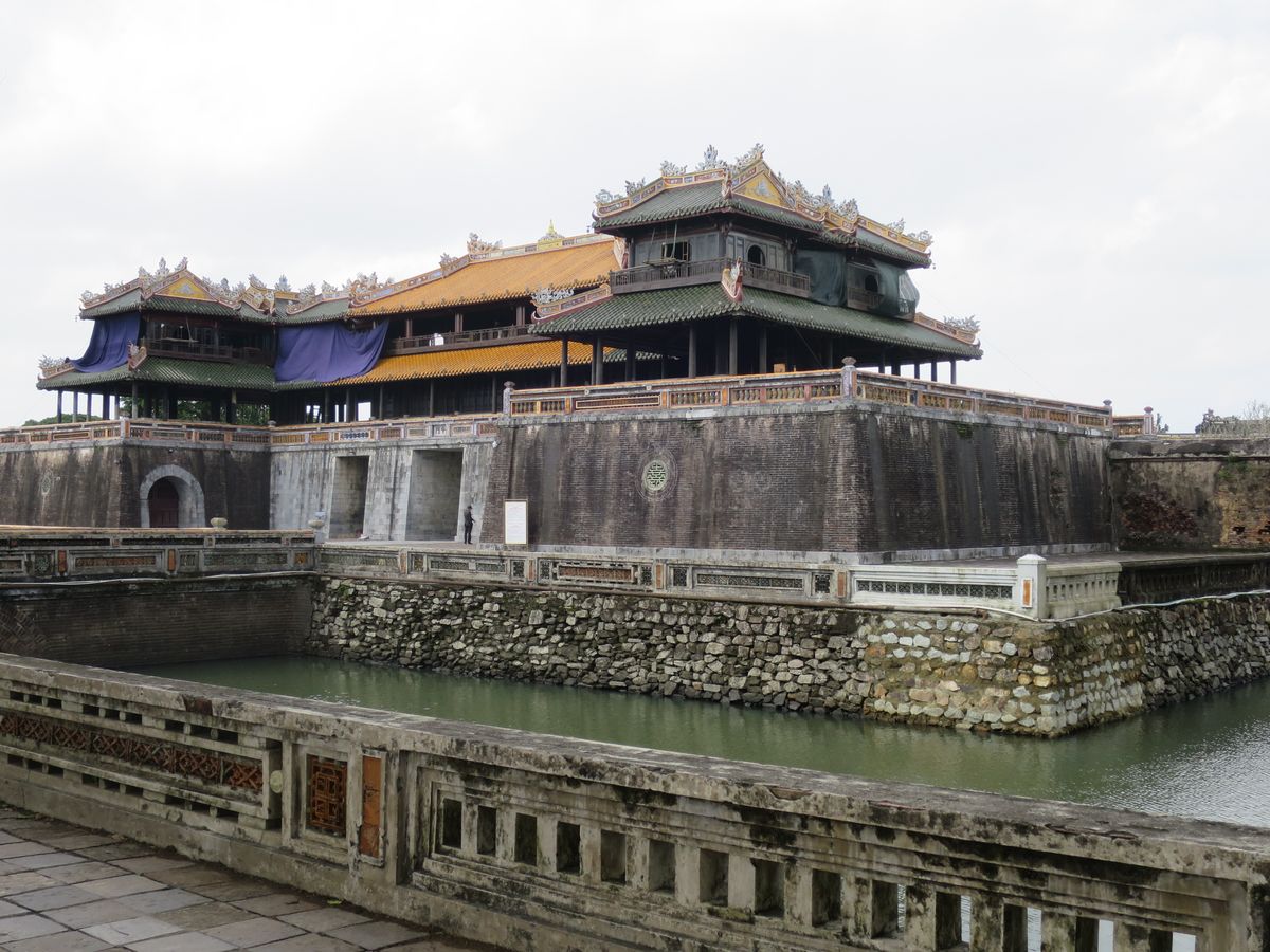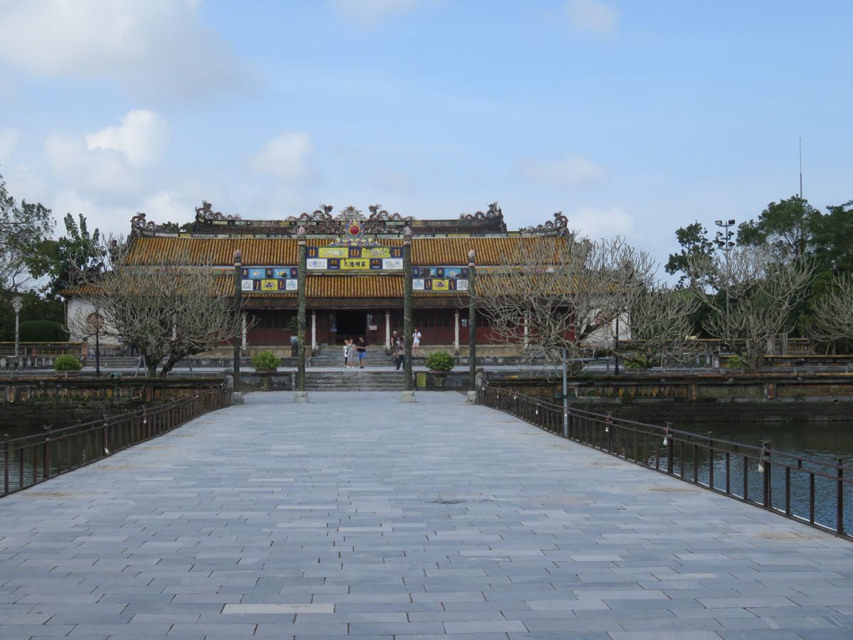 ダナンの海辺のリゾートに夫婦で宿泊して、そこからフエへ行く日帰りツアーに参加しました。まずは、峠道を快調にとばしてカイディン帝廟へ、その後に天母寺を見学。フエ宮廷料理の昼食の後に、いよいよのグエン朝王宮の跡を見学しました。王宮跡は驚くほど立派な城壁と大きな門が聳え立ち、1歩中に入るとこれまた驚くほど広大な敷地が広がっていました。おそらくあったであろう建物は破壊されてしまい修復された赤いきれいな回廊が伸びていました。あれほど大きなものを作る大きな力とそれを破壊してしまう大きな力を感じました。フエは、行かなければ知らないままで、行ったからこそもっと知りたくなる場所でした。きちんと歴史を知りたいと思いました。参加して本当によかったです。1日では時間が足りません。次にもし行くことがあれば、フエに宿泊して、ゆっくりと王宮跡や帝廟を楽しみたいと思いました。