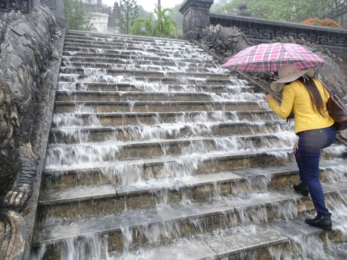 ただ、この日カイディン帝廟に到着してすぐ豪雨が降り帝廟の階段が滝のような状態に・・・。