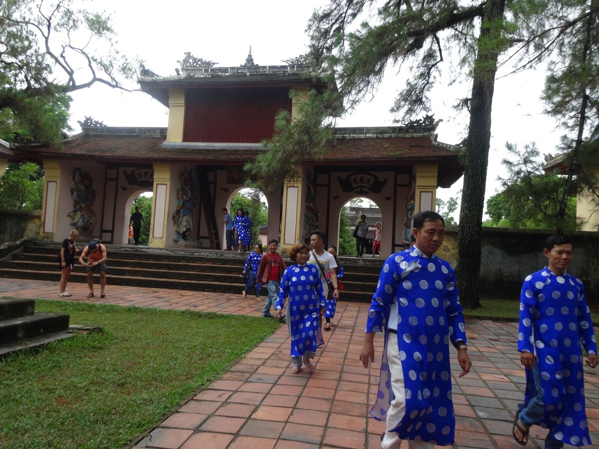 宿泊地はダナンでした。ダナンからフエへ終日観光のコースでした。その当日はフエのホテルに宿泊でしたので、本来ならダナン発、ダナン戻りのツアーになるのですが、事前交渉で、フエのホテル送りにしてもらえました。また、10月から雨季が始まるということで観光客が少なく、私たちが選んだツアーは私たちだけという、非常にガイド密着度の高いツアーになり、一つ一つの説明を非常に詳しく丁寧に対応してもらえました。ツアーの中身もよく、フエ王朝廟巡り、王宮、ティエンムー寺、ドラゴンボートと内容豊富で満足しました。ドラゴンボート内でのおばちゃんのお土産売りは、まあご愛嬌というところですね。