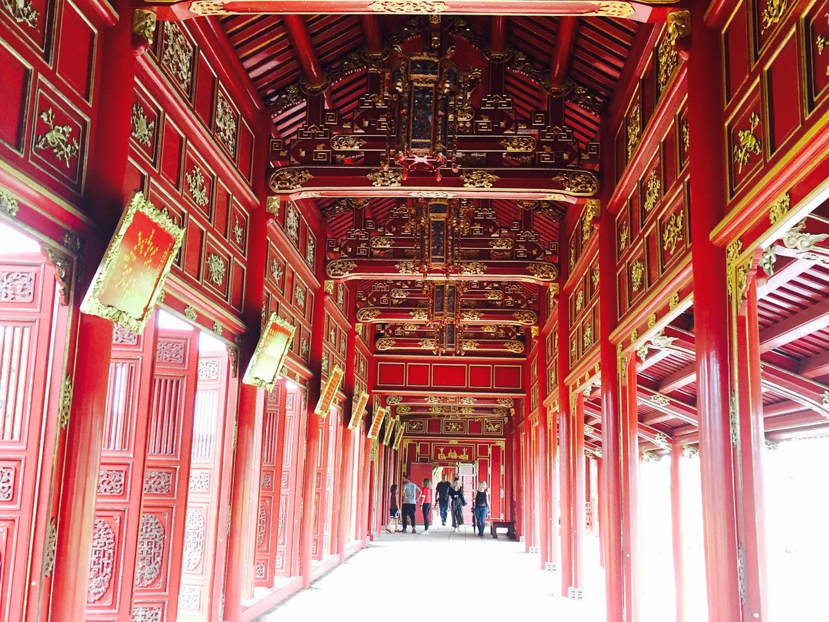 世界遺産フエの宮廷内はとても美しく、寺院の素晴らしい建築物に魅了されました。