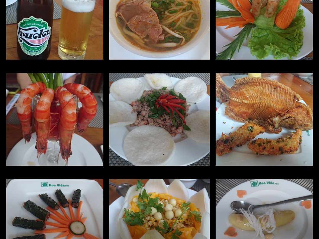 当日は家族、カップル含みで約10人くらいの参加でした。思っていた通り、効率よく遺跡を回り、ガイドさんの説明を聞きフエの歴史も知ることが出来、また宮廷料理(写真)もとても美味しかったです。