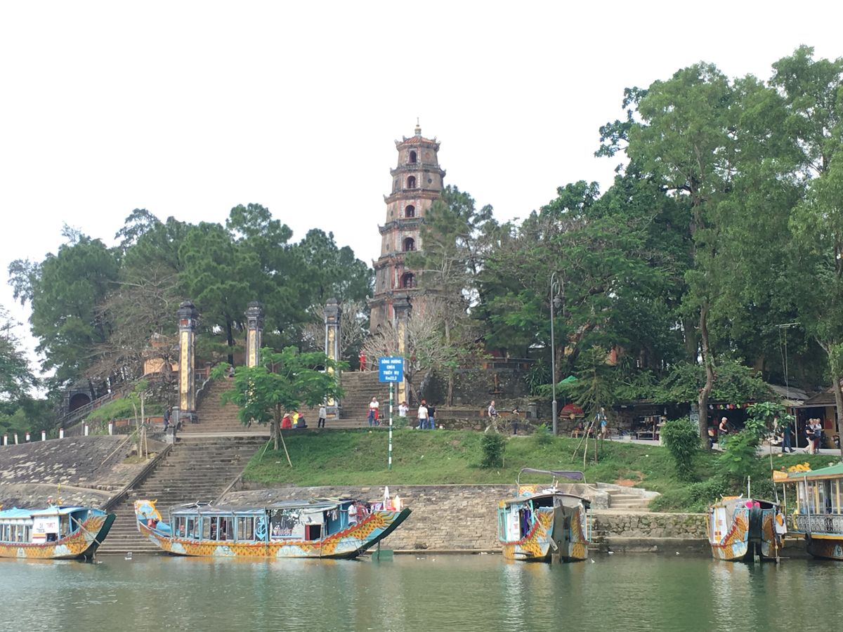 カルディン帝廟➡️トゥドゥック帝廟➡️ドラゴンボートに乗りフォン川遊覧➡️ティエンムー寺➡️宮廷料理の昼食➡️ドンパ市場➡️王宮観光