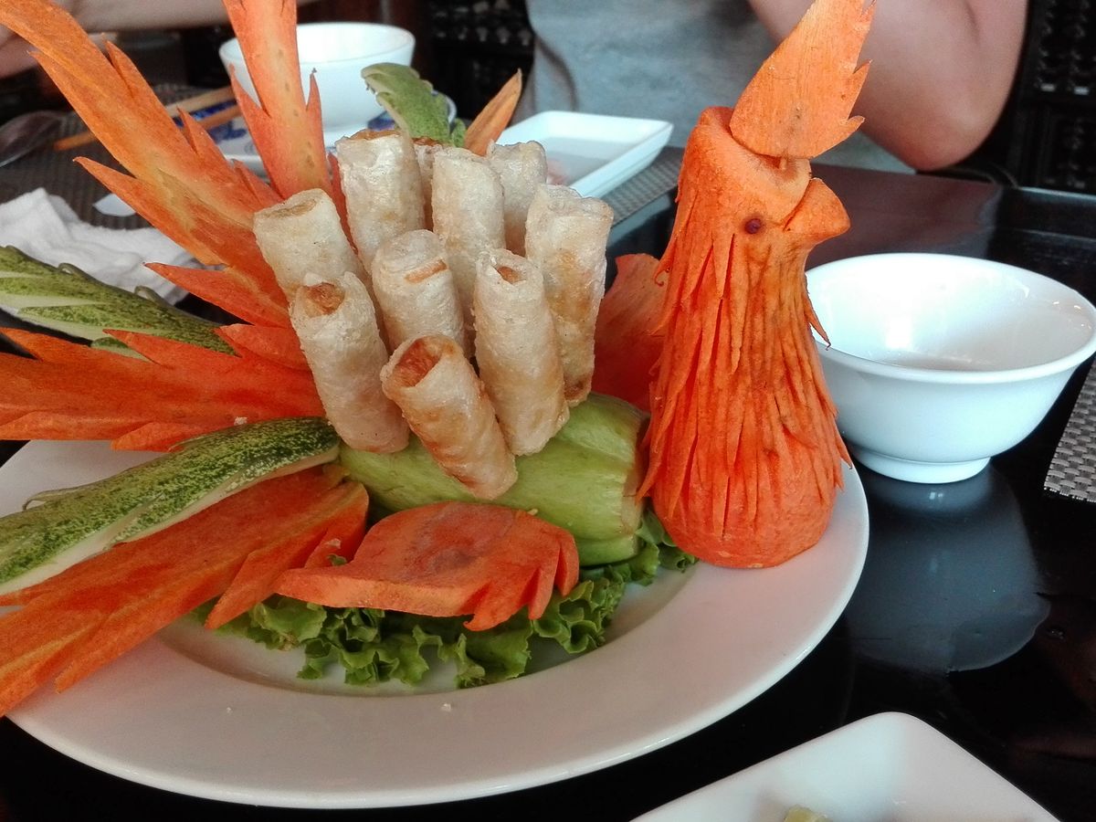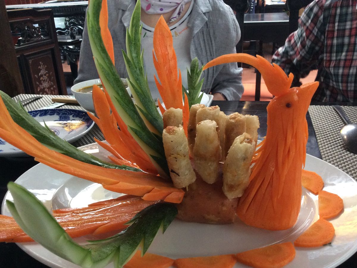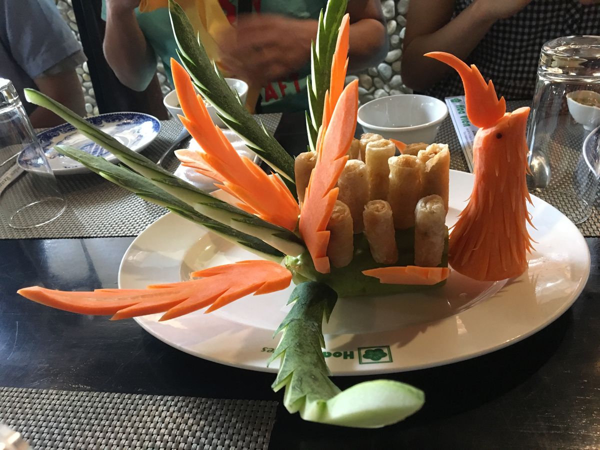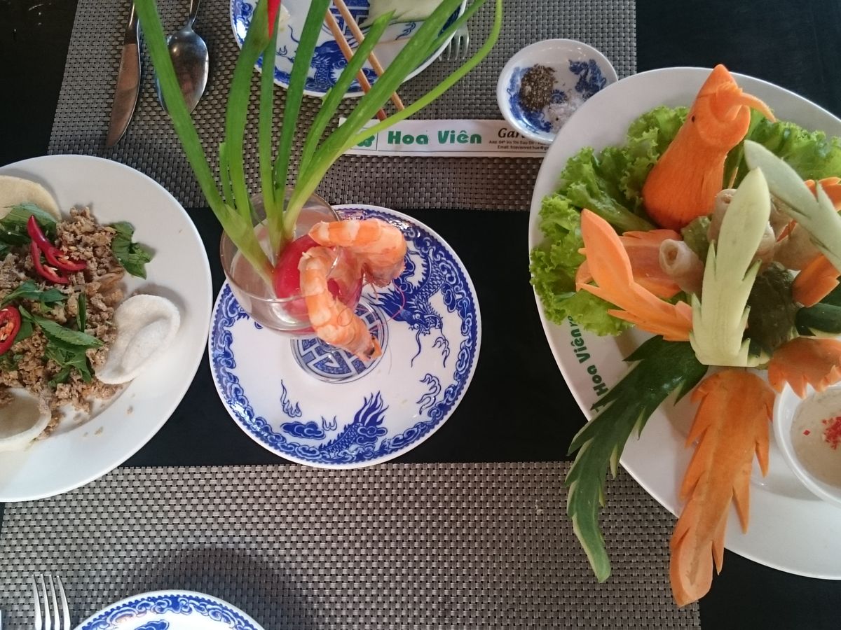 ダナンに戻る前にランチ。飾り付けが面白い料理でした。