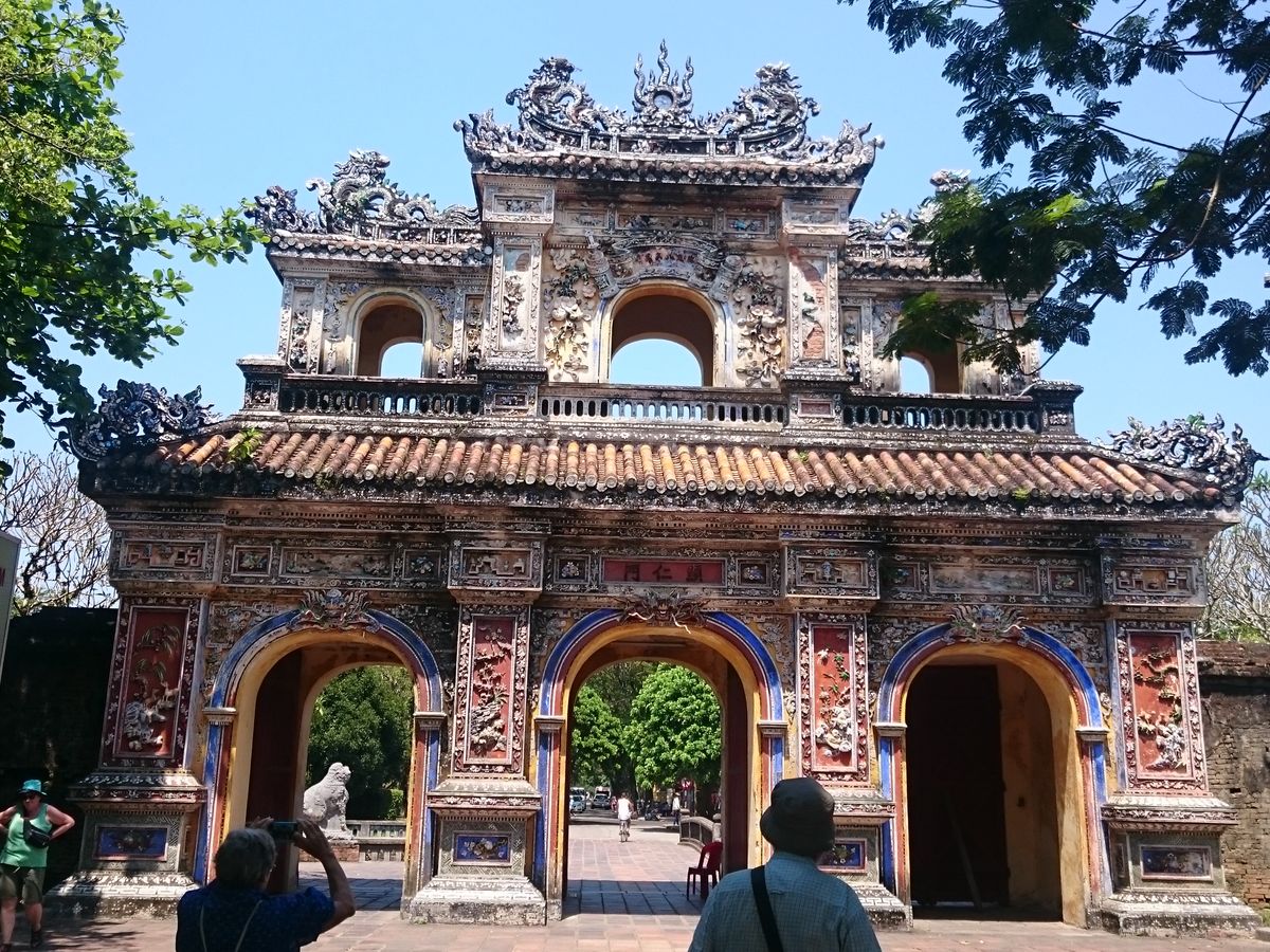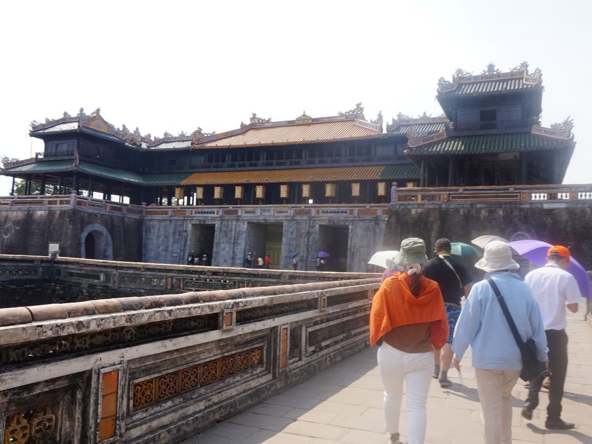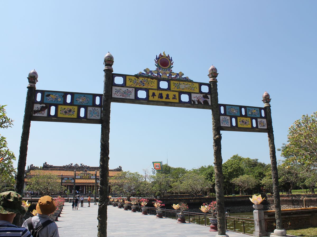 日差しがきつくなった頃に、世界遺産古都フエに到着しました。残念なことに戦争による破壊を受けてしまいましたが、廃墟の中にも当時の王宮の栄華が感じられます。
