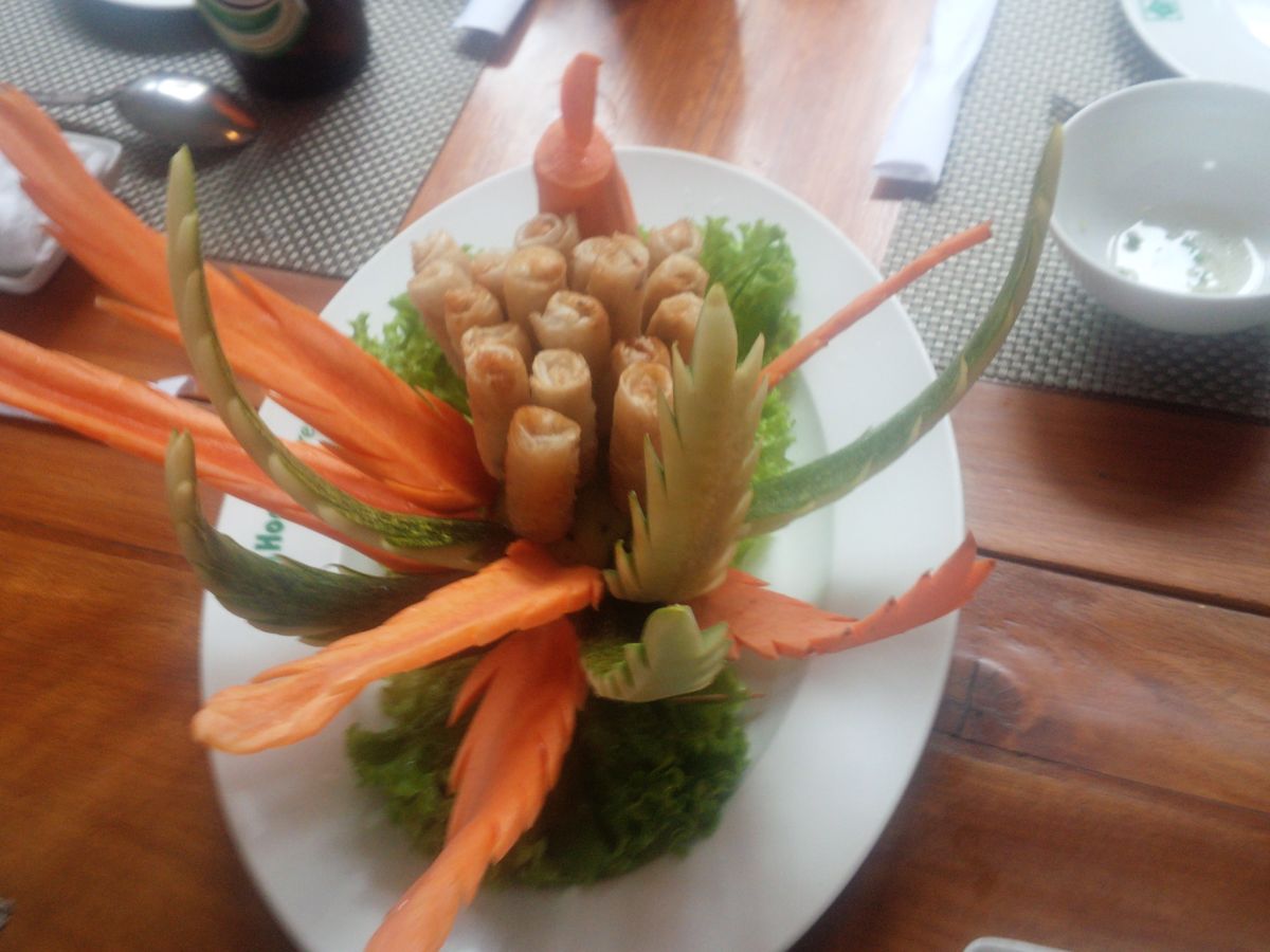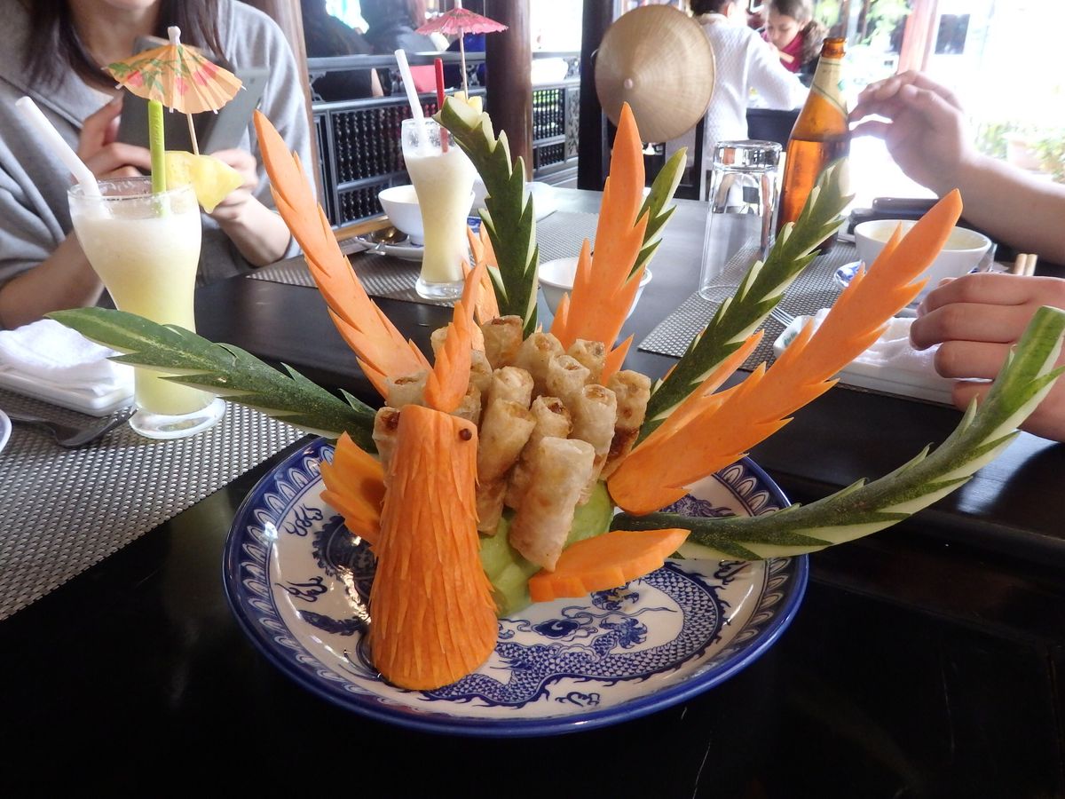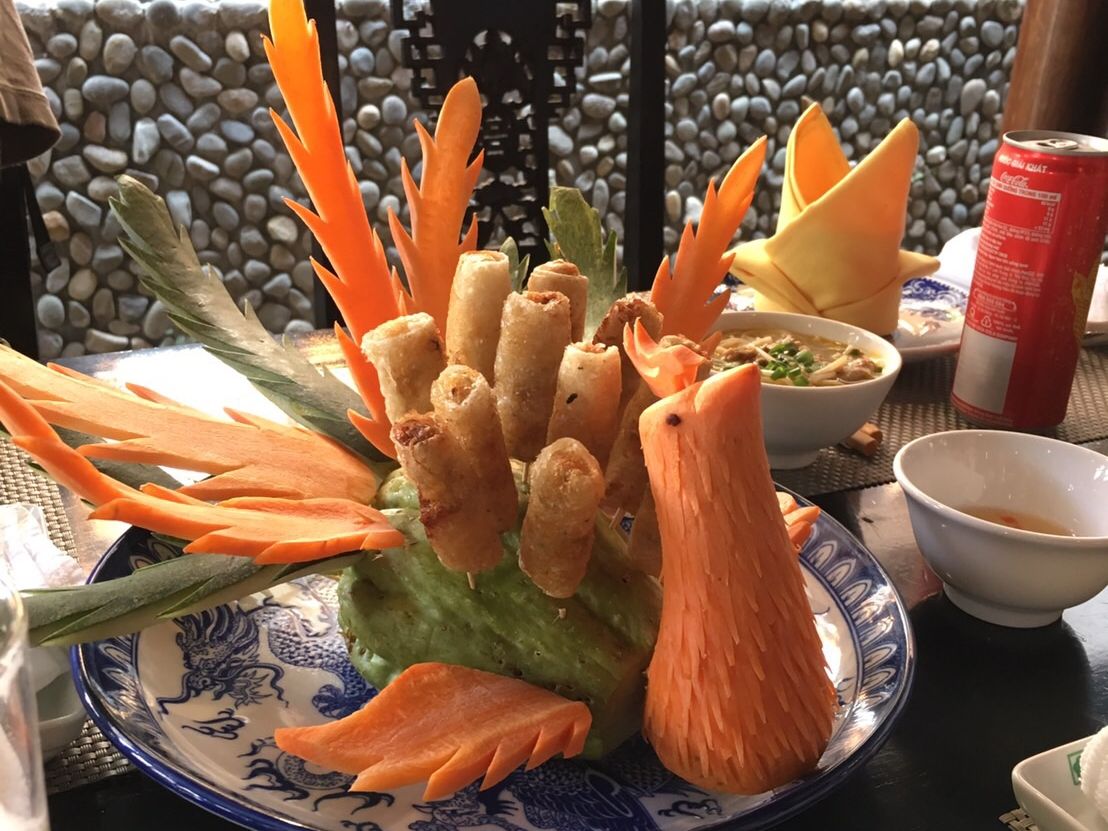 ガイドさんのご説明は、不明瞭な点も多く若干解り辛かった感はぬぐえませんが、フエでの宮廷料理は、見た目も華やかでとても美味しく感じられました。