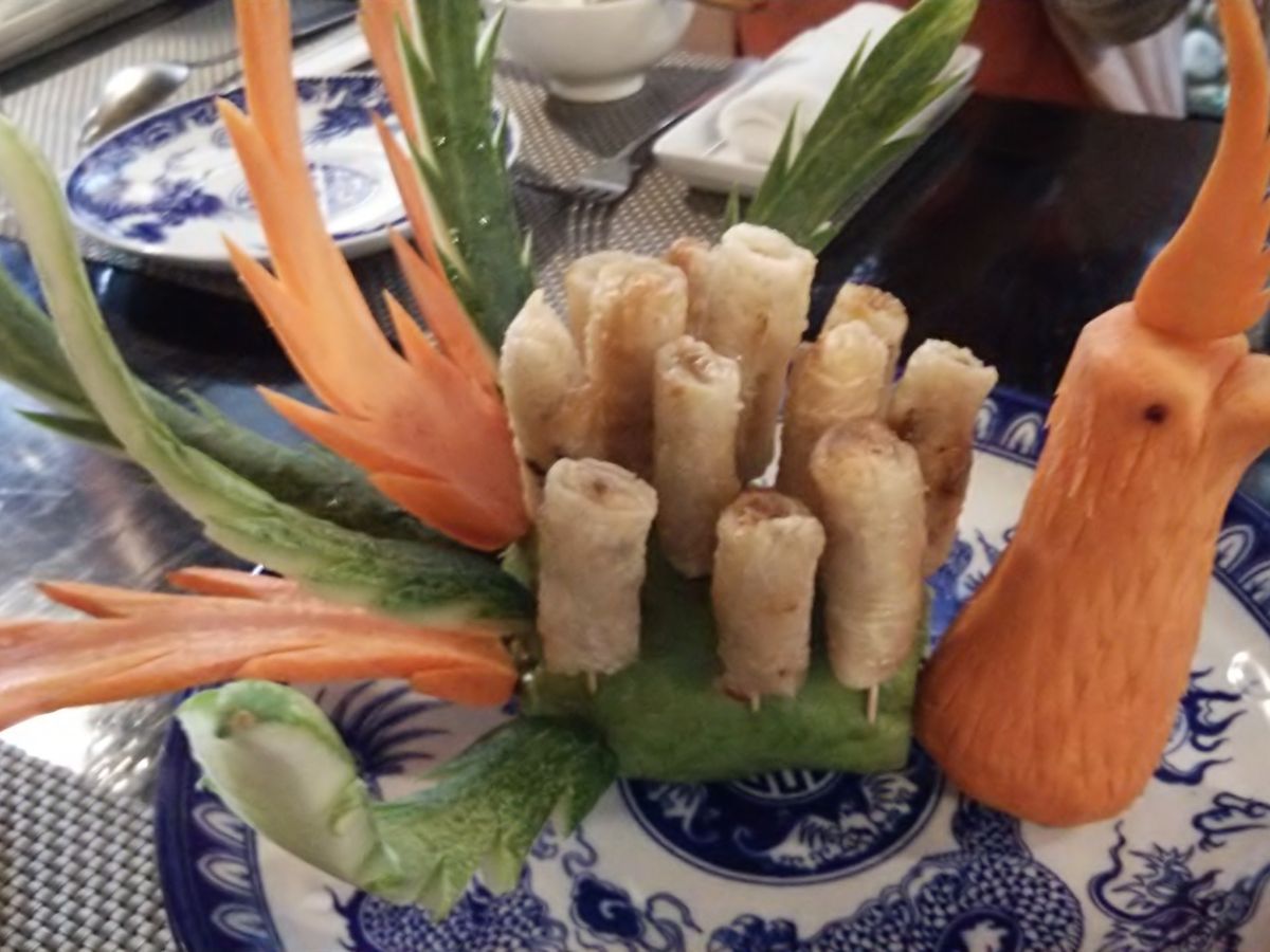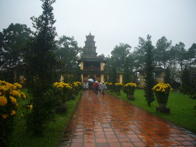雨で川の水が増えていたのでドラゴン船には乗らない方がいいとか、市場も道がぬかるんで歩き難いからやめましょうとアドバイスしてくれたツアコンのアンさんには感謝です。食事はフエの名物料理のレストランで、私達の口に合ってとても美味しかったです。そうめんのようなフォーのブンと揚げ春巻き、蒸し海老、蓮の実の入った炒飯は絶品でした。