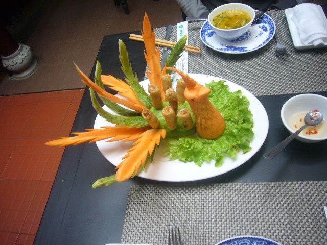 昼食は2時にいただき、フエの宮廷料理でした。豪華に飾りがあり、日本人の味覚にとってもOKです。午前中に観光を済ませたので、ダナンには4時過ぎに到着しました。せっかく行ったのですから時間ギリギリまで、楽しみたかった。
