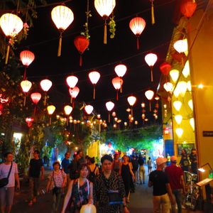 ホイアンでは、観光客の多さに酔ってしまいましたが、日が暮れ 夜になると 街全体がとても幻想的な雰囲気に包まれ、通りや彩るランタンがきれいでした。灯籠流しの体験がついており、懐かしい気分に浸ることができました。観光主要エリアは歩行者天国になっているので、バイクを気にすることなく 散策が楽しめます。