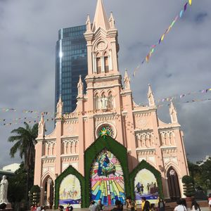 当日はホテルまでマイクロバスの迎えがあり、移動の間にドラゴン橋やハン市場の入口などを見ることができました。1番目の観光はダナン大聖堂。新型コロナウィルスのため車窓からの見学。写真撮影タイムがありました。2番目はチャム彫刻博物館。チャンパ王国の歴史や宗教について説明していただいたので、興味をもって見ることができました。ミーソン遺跡のどの場所から発掘されたかなどの説明もあり、午後からの遺跡観光の前に行けてよかったです。3番目は五行山。大理石でできた山で、お寺や洞窟に仏像が安置されています。山の中腹までエスカレーターで登りますが、その先も階段がたくさんあり、なかなか大変でした。歩きやすく滑りにくい靴で、余計な荷物はバスに置いて身軽になって登ることをおすすめします。このあと食事には早いということで土産物店に2ヶ所立ち寄りました。